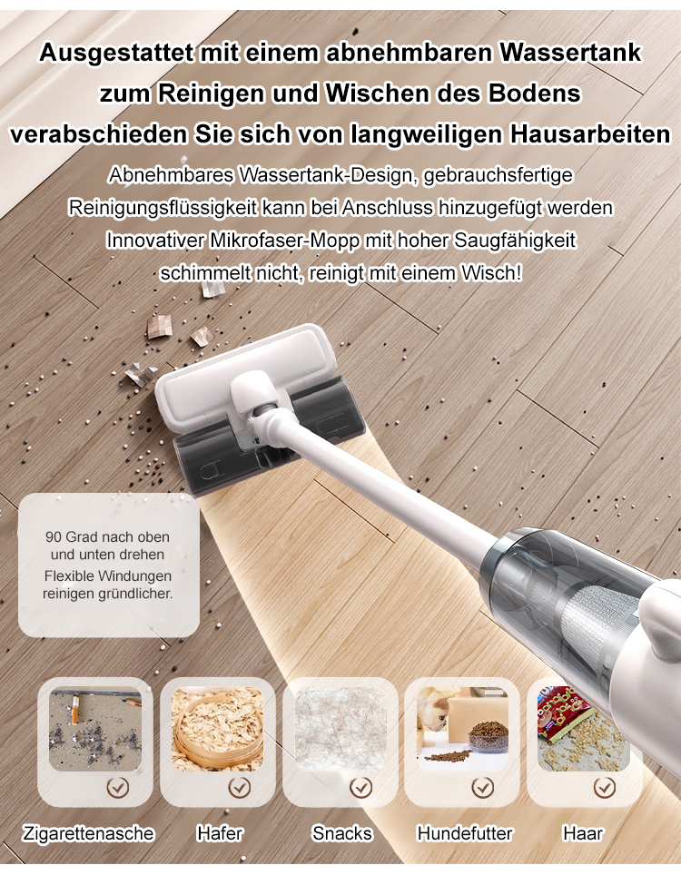 【Kabelloser Saug- und Wischroboter】Starke Saugkraft für Milbenentfernung und Bodenreinigung