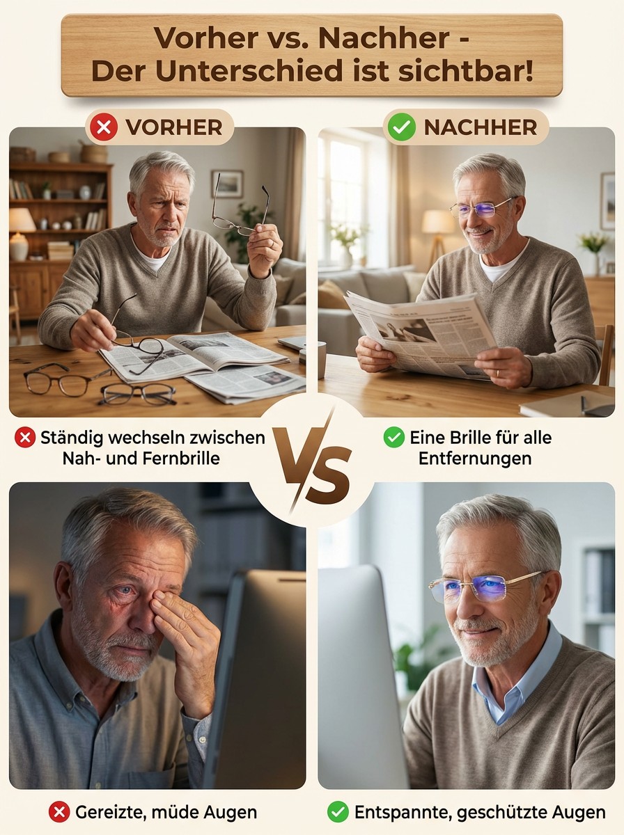 ✅ Kein Sehtest nötig – Gläser passen sich automatisch an, immer klare Sicht!👓 Zusammenarbeit mit namhaften europäischen Augenkliniken💻 Lange Bildschirmzeit? Augen bleiben entspannt & unbelastet😌 Ganztägiges Tragen ohne Ermüdung🛡️ Blaulichtschutz, beschlagsfrei & strahlungsgeschützt