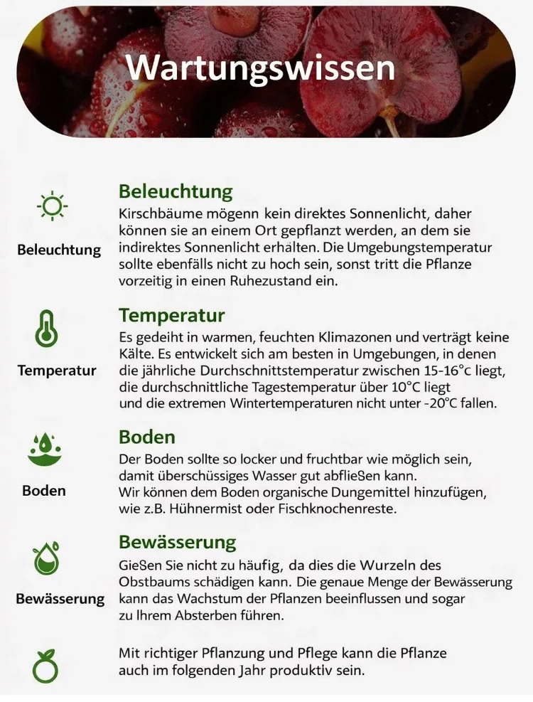 【100% Anwachsgarantie】2-jährige Jungpflanze(Winterhart bis -38°C):Ganzjährige Ernte | 200+ Früchte | 1 Kaufen + 1 GRATIS 🍒